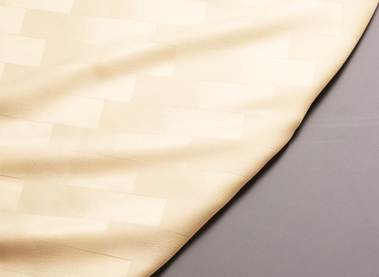 レンガ造りのモチーフ柄を、光沢セミダル糸を使って、三層の異なった質感に見せました。ツブツブの特徴織、ツルッとしたサテン織、ナチュラルな平織り。