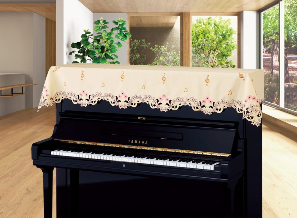 カットワークレースタイプ/CL-70 音符柄の刺繍生地の上に、可愛いお花の刺繍と、キュートなカットワーク。個性的なインテリア志向のレースアイテム! オーダー品購入はこちら トップカバー・カットワーク刺繍レース CL-70 ¥ 7,700(税込) 約200×70cm ■共通仕様 カラー: クリーム系花柄&音符柄刺繍 素 材: ポリエステル100% BACKUP